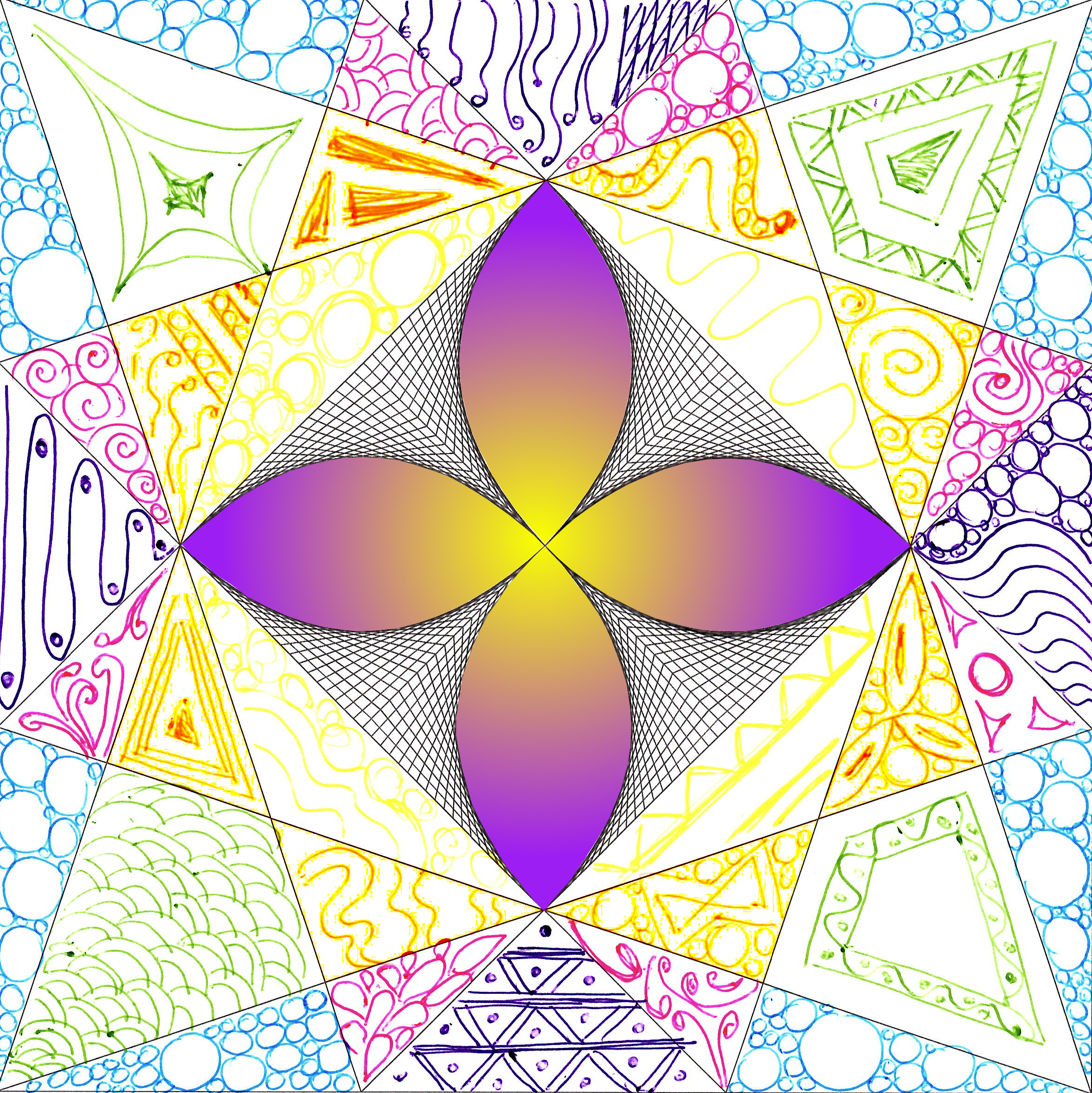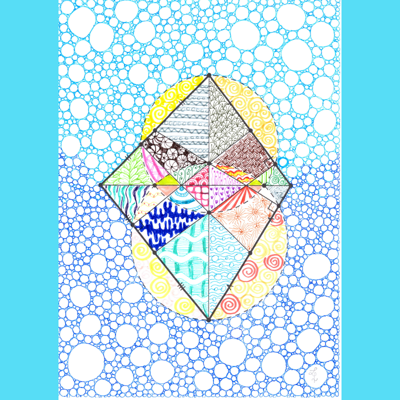Fin da piccola, ho sempre adorato il colore giallo: simbolo di energia, luce e vitalità, mi ha ispirato a creare opere che catturano l'essenza della gioia e dell'ottimismo. La mia prima opera è un collage di cerchi o parti di cerchio che rappresenta il disegno di un teorema di geometria euclidea sulla tangenza di sei cerchi. Ho voluto esplorare come la precisione matematica possa integrarsi armoniosamente con l'arte, creando un effetto visivo affascinante e complesso. Questa fusione di forme geometriche è un tributo all'eleganza della matematica e alla sua presenza nascosta nella bellezza del mondo naturale.